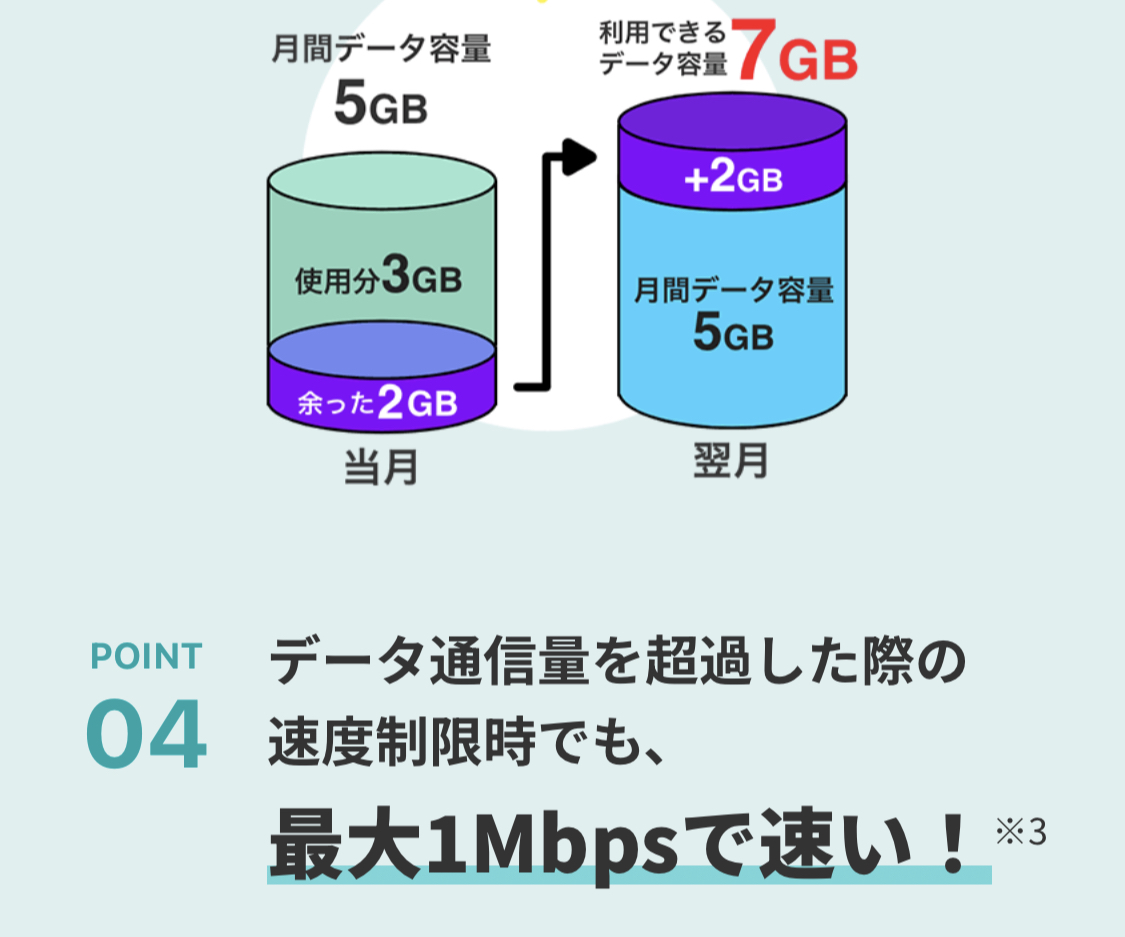 10GB以上のプランは速度制限後も1Mbps!