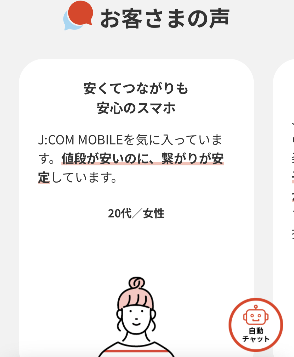 そして、公式でもデータ盛適用時のコスパや1GBプランの安さを強調しているように、JCOMモバイルはどちらかというとコスパ重視のバリュー帯格安SIMとして認識されています。